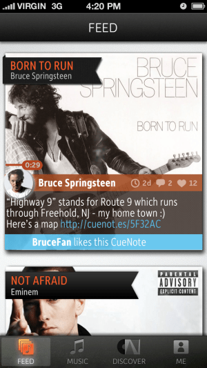 A social liner notes app with each note timed to a specific moment in the song. Some artists added behind-the-scenes notes about lyrics or music choices. (And, no Bruce didn't, that was just an example)